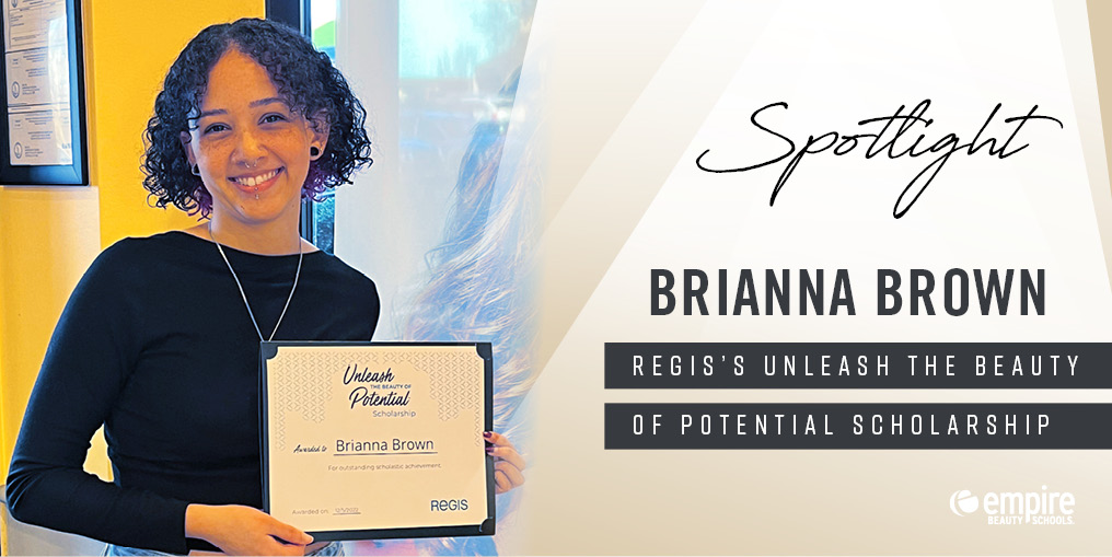 We are proud to announce that Brianna Brown, an Empire Beauty School Richmond graduate, is the latest recipient of the Regis’s Unleash the Beauty of Potential Scholarship of $5,000. Brown graduated in December 2022 and received an apprentice position at a salon.